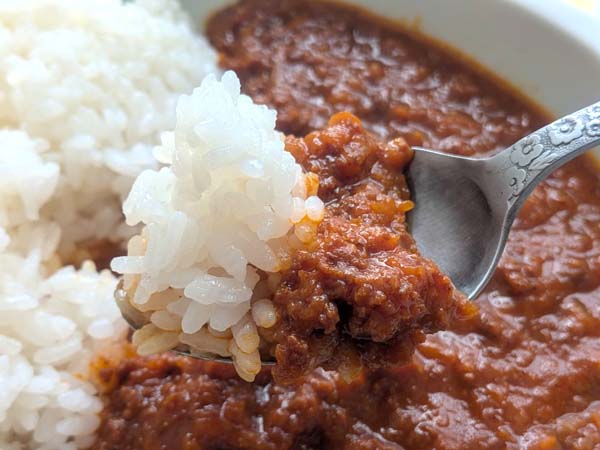 甘味が強いので、甘めが好きな人はいいですが、一般的なカレーを考えるともう少し抑えた方が好みという人がいるかもしれません。