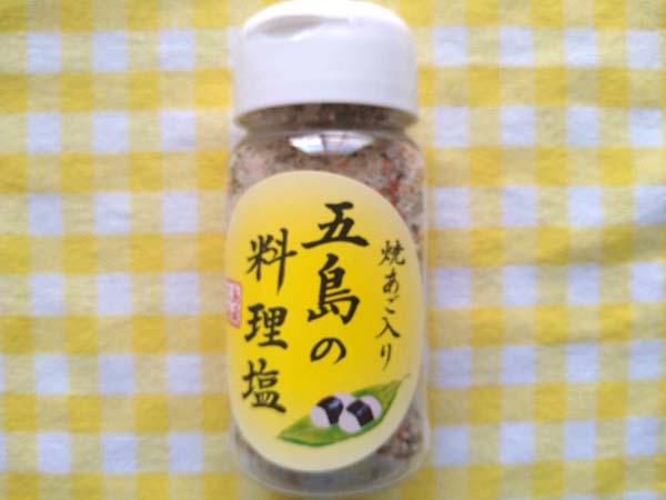 五島列島の海塩を焼いて香ばしくし、それに焼あごの粉末等を混ぜ合わせた無添加の調理塩である五島の料理塩。