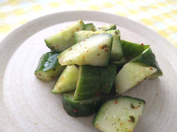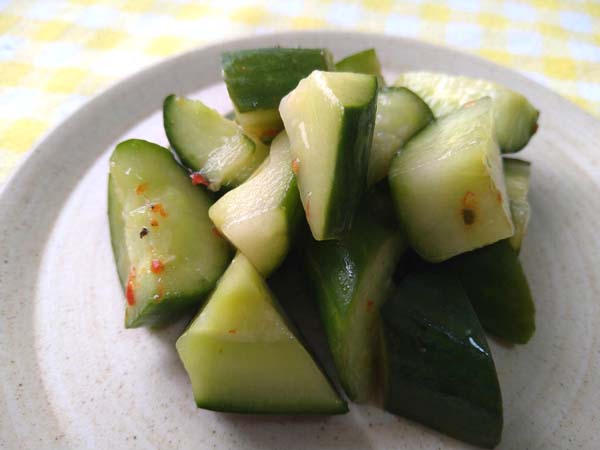 次は、きゅうりと五島の料理塩、ニボサンバル、酢で漬けてみました。