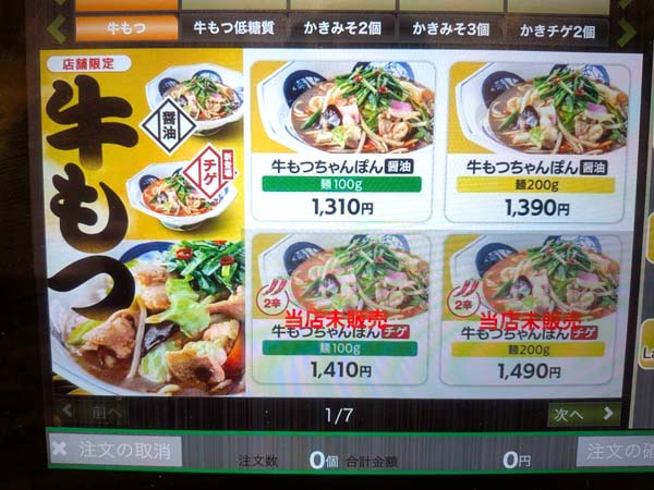 ※一緒に行っている期間限定・店舗限定の「九条ねぎのあんかけしょうゆちゃんぽん」を販売している店舗では、「牛もつちゃんぽん」は販売していません。