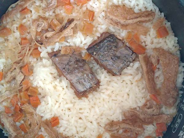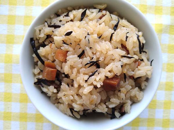ご飯を炊く前に、炊飯器に入れて、お米と一緒に炊き上げます。