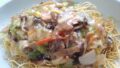 普通の皿うどんよりも、餡に水気が少なく、粘度が強いタイプです。