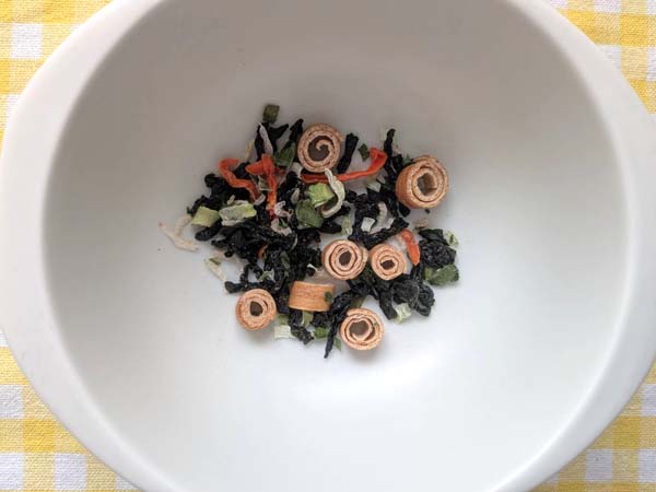 わかめや、ふ、人参、焼あごパウダーが入っています。焼あご風味となっていますが、しっかり焼あごが入っているので、人口調味料で焼あごっぽくしているわけではありません。焼あご風の味ではなく、本当に焼あごの風味という意味ですね。