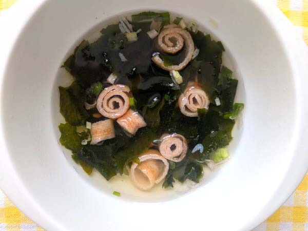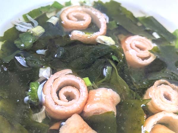 しっかりとしたわかめの歯ごたえと、焼あごの風味が美味しい。ほっとするスープです。