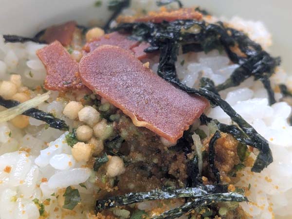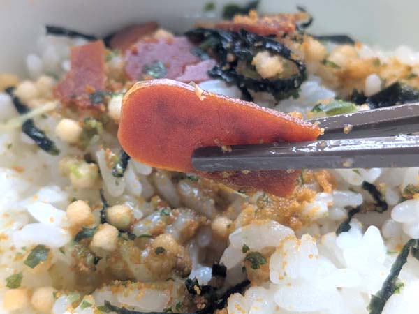 カラスミスライスはお湯をかけて混ぜることで、崩れていきます。