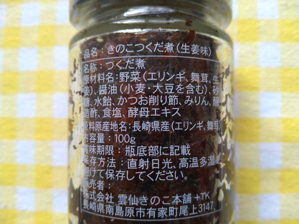 野菜(エリンギ、舞茸、生姜)、醤油(小麦・大豆を含む)、砂糖、水飴、かつお削り節、みりん、醸造酢、食塩、酵母エキス