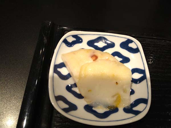 小鉢はその時々によって違っていそうですが、今回は柚子の果皮が入ったかまぼこと、タコの身が入ったかまぼこでした。