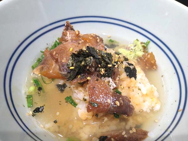 半分ぐらい食べたら、あご出汁スープでお茶漬けにしました。少しブリの身にも火が通り、2度美味しい。