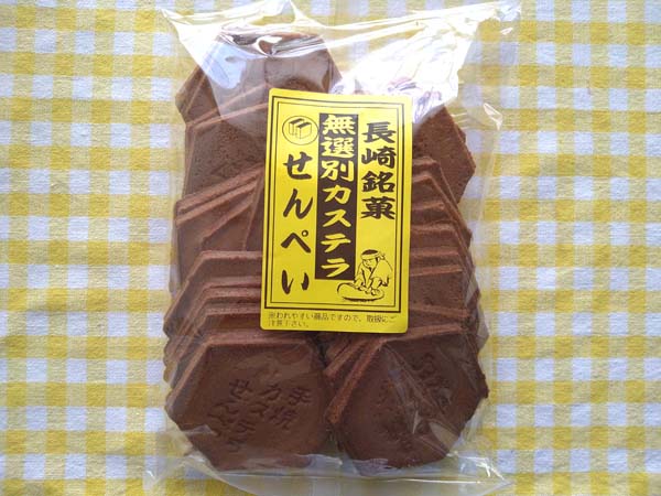 長崎銘菓のカステラと同じ材料を使用し、長崎の卵をふんだんに入れて焼き上げたせんぺいです。