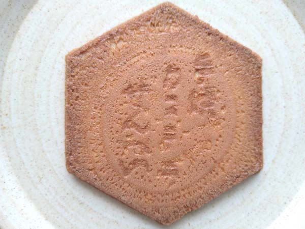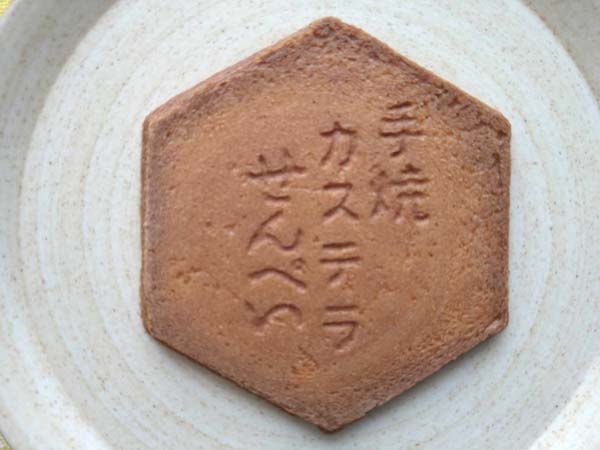六角形のせんぺいです。九十九島せんぺいと同じ形ですが、どっちが先とかあるのかな?