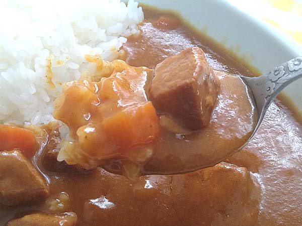 甘口カレーとしては、しっかりスパイスも感じて、そこがいい部分でもありすが、辛さが苦手な小さな子どもとかは注意した方がいいかも。