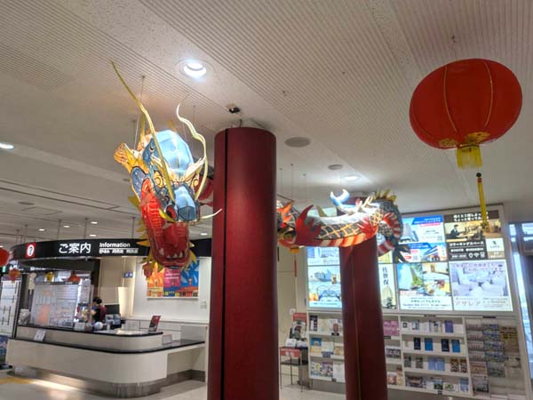 長崎駅にも大きなランタンオブジェがあります。