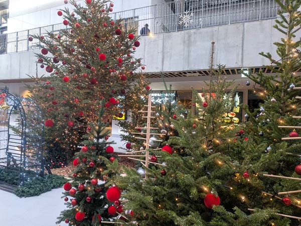 昨年は3か所のクリスマスツリーオブジェがありましたが、今回はそれに加えて、クリスマス飾りが装飾された道が追加されていました。