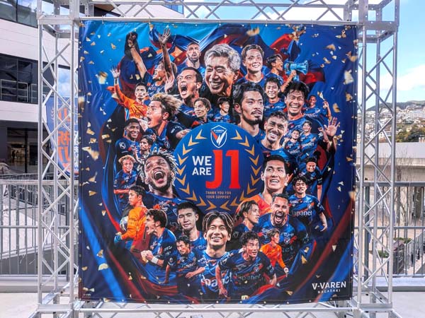 何より、V・ファーレン長崎がJ1昇格したことで、J1昇格祝いの飾りやフォトスポットが設置されています。
