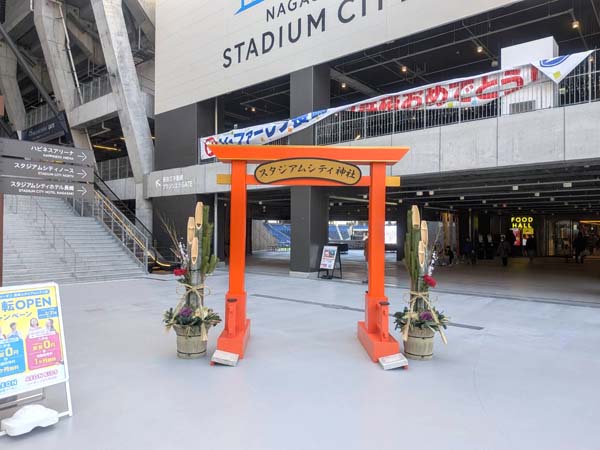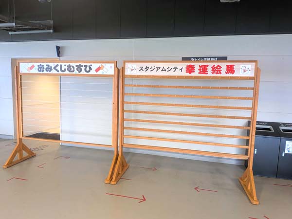 正月時期には、昨年同様、長崎スタジアムシティ神社が設置されていましたが、今年はおみくじや幸運絵馬も追加されていました。