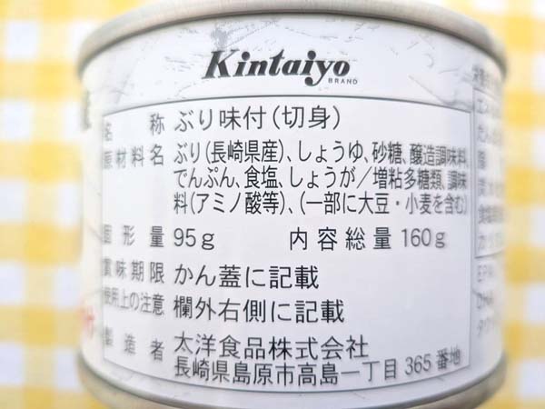 ぶり(長崎県産)、しょうゆ、砂糖、醸造調味料、でんぷん、食塩、しょうが/増粘多糖類、調味料(アミノ酸等)、(一部に大豆・小麦を含む)