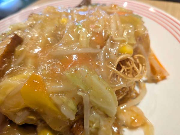 自家製ピリカラ味噌を加えた野菜あんで、ピリッと刺激的でクセになる味わいのピリカラ皿うどん。