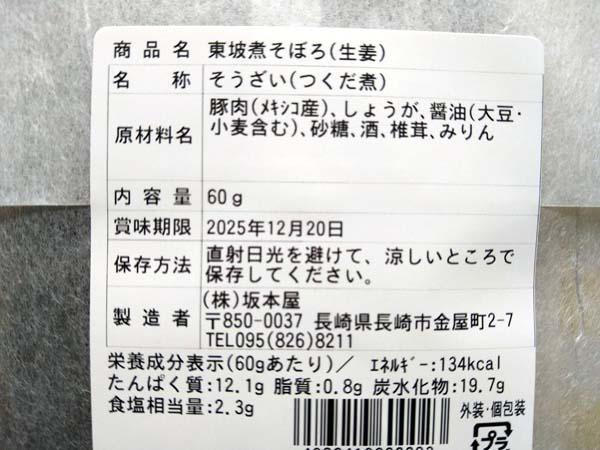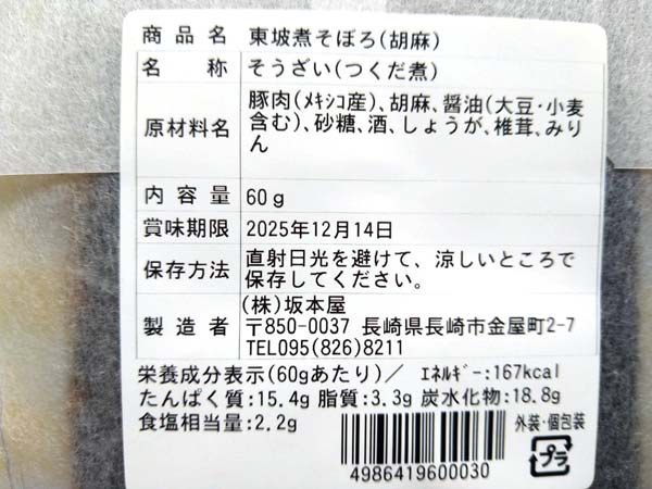 豚肉(メキシコ産)、胡麻、醤油(大豆・小麦含む)、砂糖、酒、しょうが、椎茸、みりん