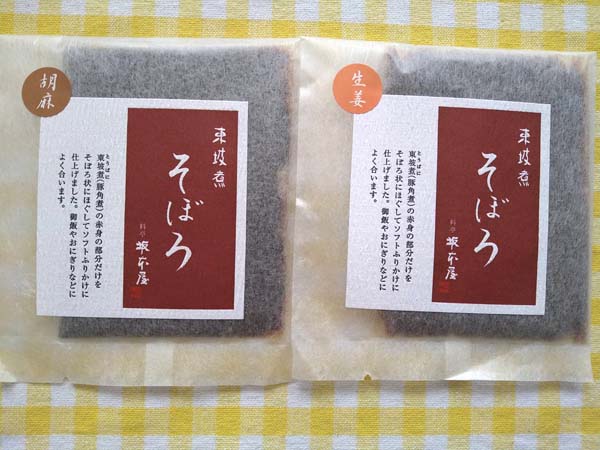 ソフトなふりかけに仕上げている東坡煮そぼろ(生姜)。