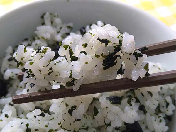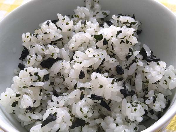 温かいごはんに混ぜ合わせるだけで完成する島原わかめごはん。