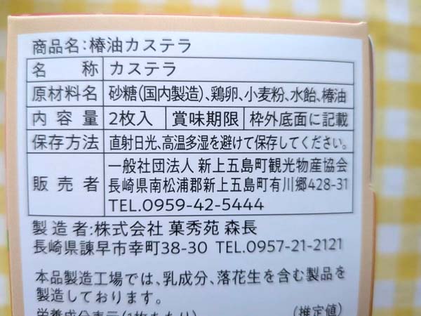 砂糖(国内製造)、鶏卵、小麦粉、水飴、椿油