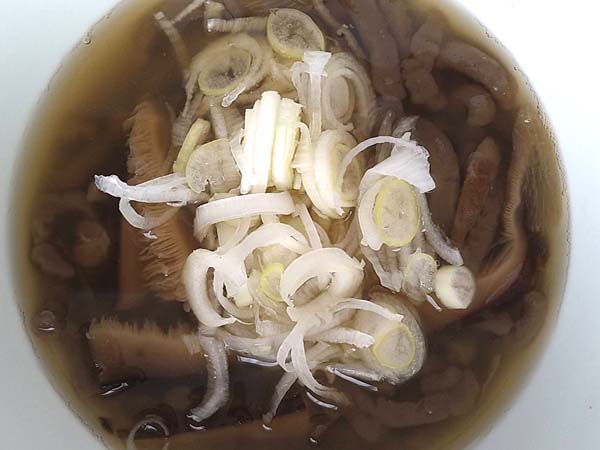 葱を入れてみましたが葱のシャキシャキ感と、ろくべえのヌルっとした感じが合う。