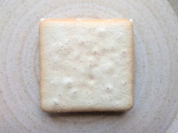 チーズの香りや味を感じ、あまり甘くないチーズクッキーになっています。ちょっと塩味も感じる。