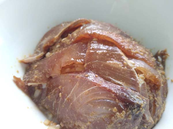 小値賀島や九州の漬けより甘さは控えめで、ゴマと生姜が隠し味で魚のコクとうまみを引き出してあります。