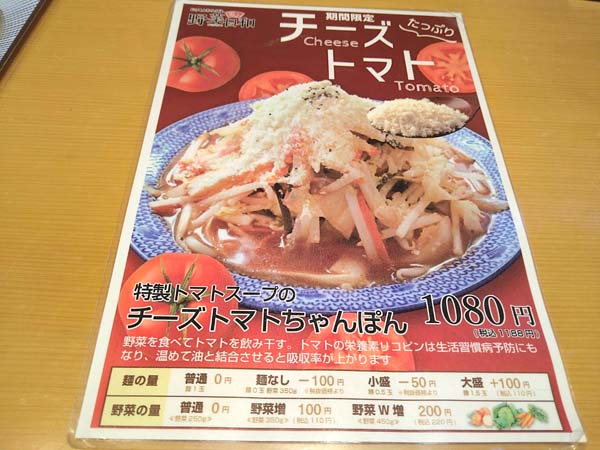期間限定、店舗も限定?の特製トマトスープチーズトマトちゃんぽん。