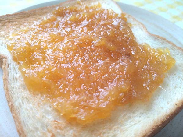 外皮は入っていないので、ママレードではないですが、味はママレードと同じく少し苦味を感じられる味です。