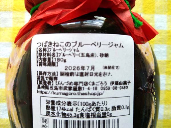 五島のシンボル鬼岳の麓で農家の坂口さんが大事に育てた、無農薬ブルーベリーを使用したつばきねこのブルーベリージャム。