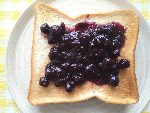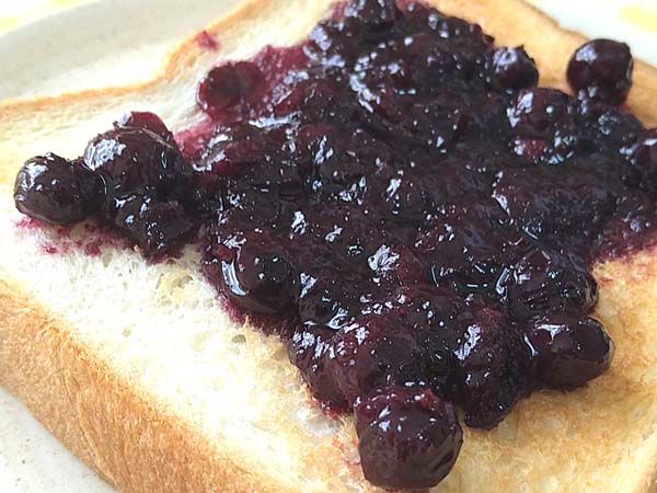 パンに乗せてみると、ブルーベリーの粒の形がしっかりと残っています。