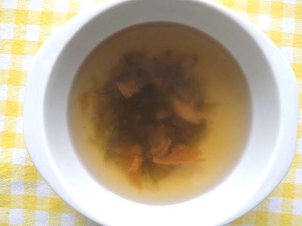 上品なあごだしをベースに、サザエ、アオサのやさしい甘みと独特の歯ごたえが楽しいスープです。