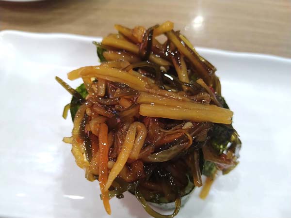 生ハムと酢飯で美味しいですが、ちょっと不思議な食感のお寿司。